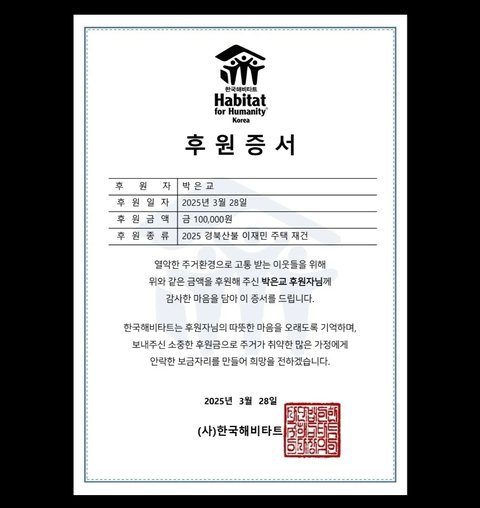 2025 경북산불 이재민 주택 재건(한국해비타트)