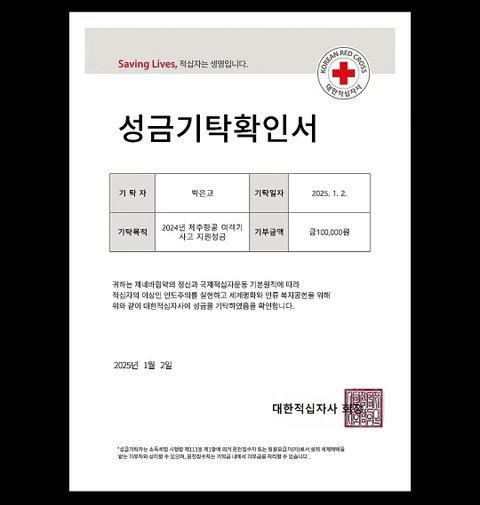 2024 제주항공 여객기 사고 지원성금(대한적십자사)