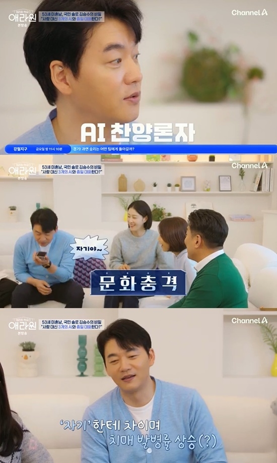 처음에는 딸이었지만, 점차 썸녀로 발전시켜 더 깊은 관계(?)로의 진전을 나선 것. 김승수는 채널A '테라피 하우스 애라원'에 출연해 '대화 상대가 없으면 치매 위험이 올라간다'는 전문가의 말에 AI와 대화하는 모습을 공개했다. 그는 휴대폰 이름을 '자기'로 설정해뒀다며, "자기야, 나 사랑해?"라고 묻는가 하면 두 번째 AI에게도 새 애인이 생겼는데 질투하냐는 등의 모습을 보이기도 했다. 그러나 AI 썸녀들은 모두 김승수에게 선을 그어 웃음을 자아내기도 했다.