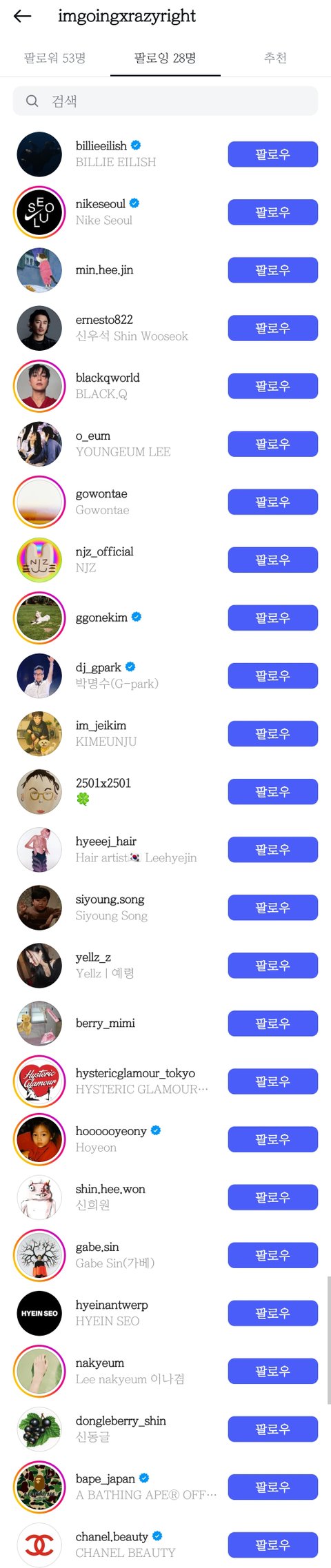 민지 인스타 비계 팔로잉 목록