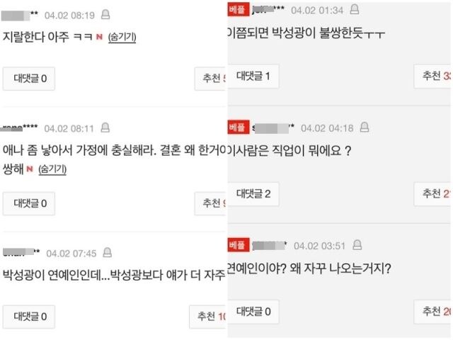 [마이데일리 = 곽명동 기자]개그맨 박성광의 아내 배우 이솔이가 암 투병 사실과 함께 일부 네티즌의 악성 댓글을 공개했다.