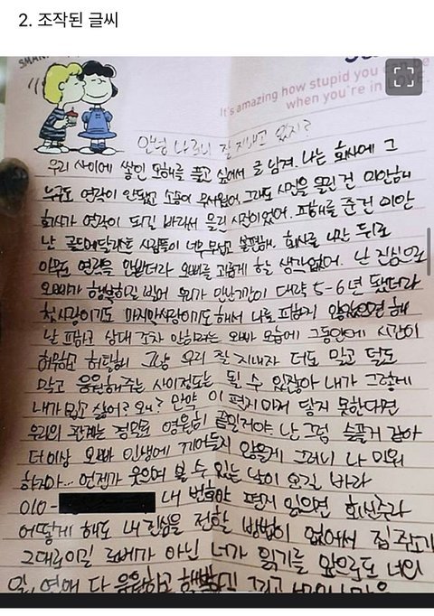 발생하지 않도록 -> 않 피하지 않았으면해 -> 않 완벽히 똑같은 위치의 ㅎ 보통 이 위치에 ㅎ이 있질 않는데 ㅏ 밑에 붙여놨네 일반적으로 쉽게 안쓰는 독특한 글쓰기 버릇 같고, 김새론만 이렇게 쓸듯함. 동일인 맞음.