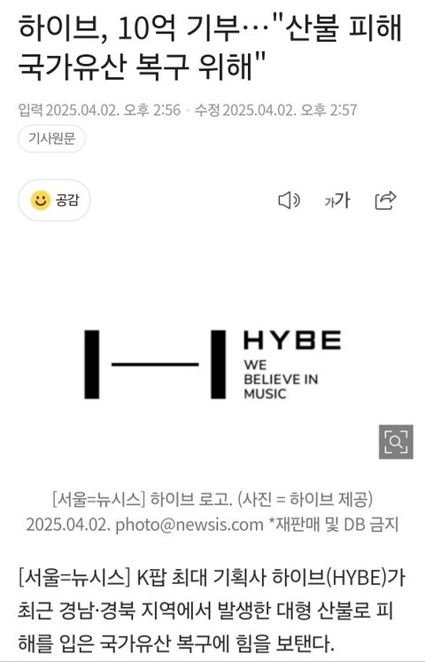 하이브 10억 기부