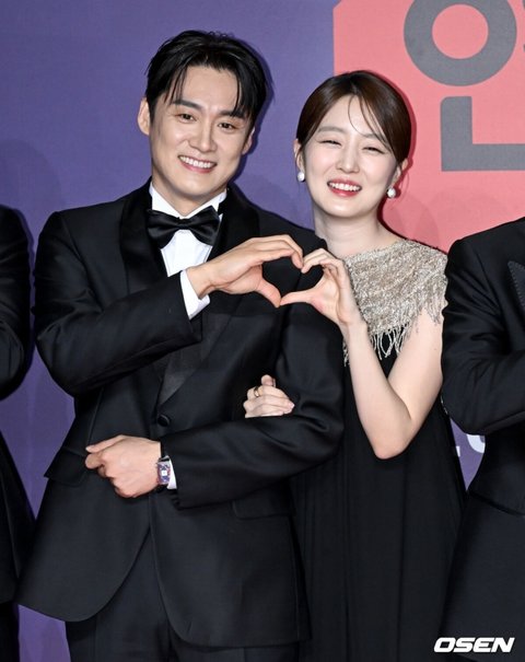 [OSEN=조은정 기자]2023 SBS 연예대상 포토월 행사가 30일 서울 마포구 상암 SBS 프리즘타워에서 열렸다.오상진, 김소영 부부가 레드카펫을 밟으며 포즈를 취하고 있다. 2023.12.30/cej@osen.co.kr