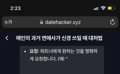 “그 사람 이야기 불편해. 사실 안 좋게 끝냈으니까 그만해”