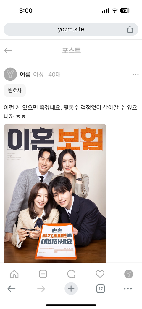 근데 또 생각해보면, 이거 들고 결혼하면 애초에 믿음이 없는 거 아님? "우리 어차피 헤어질 거 대비해서 보험 하나 들어둘까?" 이러면 결혼식장에서부터 눈치게임 터지는거임 ㅋㅋㅋ