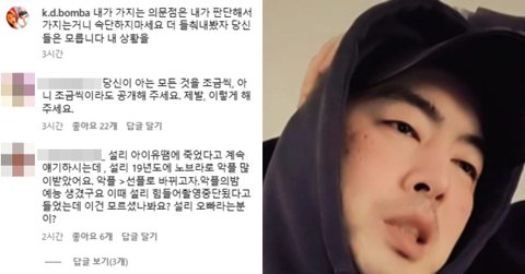 설리의 친오빠가 자신의 SNS를 통해 “속단하지 마세요. 당신들은 내 상황을 모릅니다”라며 또 한 번 의미심장한 입장을 밝혔다. 해당 게시글에는 “설리는 아이유 때문이 아니라 2019년 노브라 악플이 컸다”, “악플의 밤 당시 촬영 중단도 있었다”는 지적부터, “김수현과 영화 리얼 관련 진실을 밝혀달라”는 요청까지 다양한 의견이 이어졌다. 오빠의 추가 폭로 이후 여론은 엇갈리고 있으며, 고인의 생전 복잡했던 심경과 이를 둘러싼 외부 요인의 복합적 해석이 계속되고 있다.