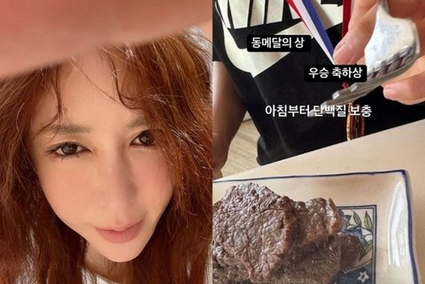3일 슈는 개인 채널에 “동메달의 상. 우승 축하상. 아침부터 단백질 보충”이라는 멘트와 함께 사진 한 장을 올렸다.