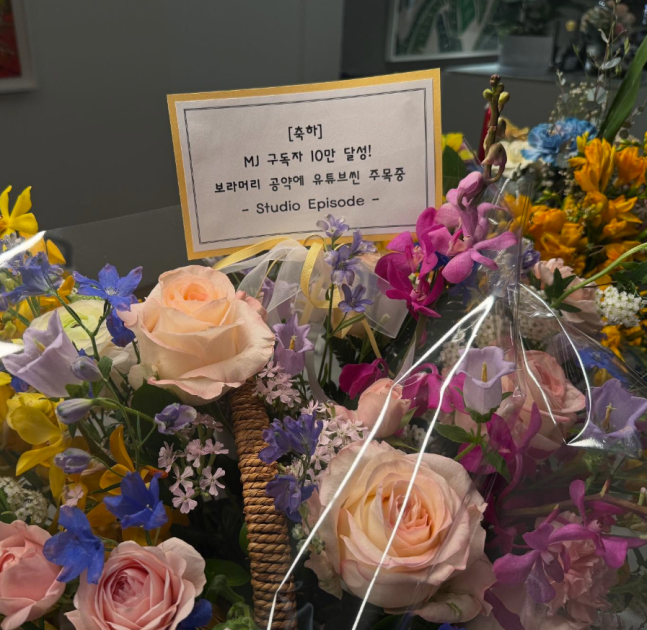 이민정은 3일 자신의 개인 계정에 '축하 MJ 구독자 10만 달성! 보라머리 공약에 유튜브 신 주목 중'이라는 푯말이 꽂힌 꽃다발 사진을 공개하며 "감사해요 유튜브 재밌게들 봐주셔서 아직 시작한지 3-4일 밖에 안 되서 용어도 배울게 많네요"라고 적었다. 이어 그는 "보라머리……이준후……"라며 말끝을 흐리기도 했다.