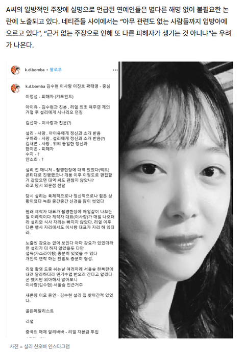 사실여부를 떠나서 괜히 아이유 포함 다른 연예인들한테 피해준듯