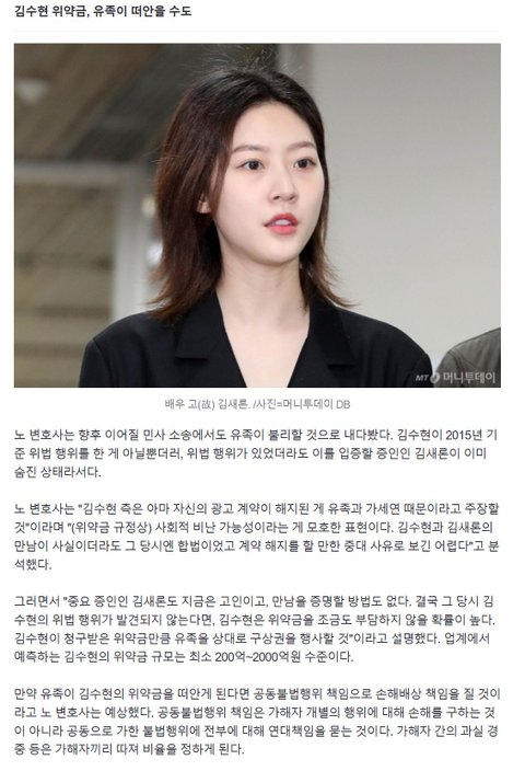 김수현 위약금 김새론 유족이 물 수도 있다함
