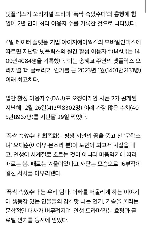 3막때 넷플릭스 비영어부문 1위 ╋ 42개국 탑텐 ╋ 6개국 1위, 한국갤럽 조사결과 3월 한국인이 가장 좋아하는 방송프로그램 1위, 4막까지 다 공개된 후 넷플릭스 전세계 2위, IMdb/로튼토마토/왓챠피디아 한국 드라마 평점 1위, IMdb TV쇼 평점 전체 2위, 왓챠피디아 3월 4주 내내 화제성 1위. 뭐가 더 필요해?