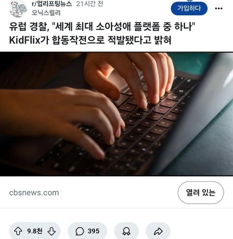 어제 독일에서 운영되던 세계최다 이용자수의 아동포르노사이트 kidflix가 미국, 캐나다 등 35개국의 협동작전을 통해 폐쇄되었다고함.