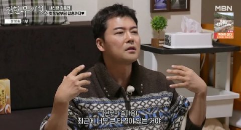 이어 김종민이 예비 신부의 장점으로 "나보다 똑똑하다"고 꼽자, 전현무는 "그건 뭐 웬만하면..."라고 농담을 건넸고, "제가 좀 답답하고, 우유부단한 게 있다. 근데 '그럼에도 사랑해요'라고 딱 한 마디 하더라"며 고마움을 전했다.