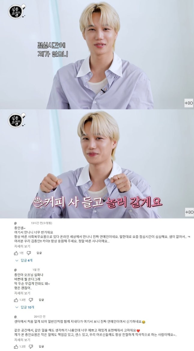사진=웹예능 '살롱드립2' 캡처해당 영상이 공개된 이후, 실제로 카이와 함께 일했던 이들의 미담도 이어지고 있다. "어르신들에게도 늘 친절했고, 항상 싹싹했다", "책임감 강하고 센스 있는 사람이었다", "무슨 일해도 잘됐을 사람" 등 현장에서 직접 카이를 본 이들의 증언이 온라인을 통해 퍼지며 따뜻한 반응을 모으고 있다.