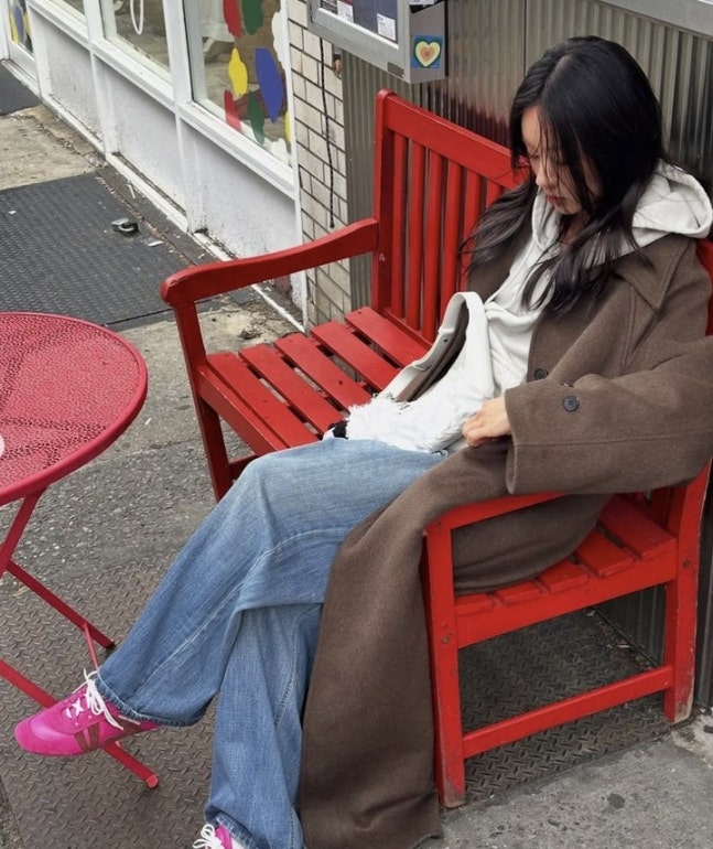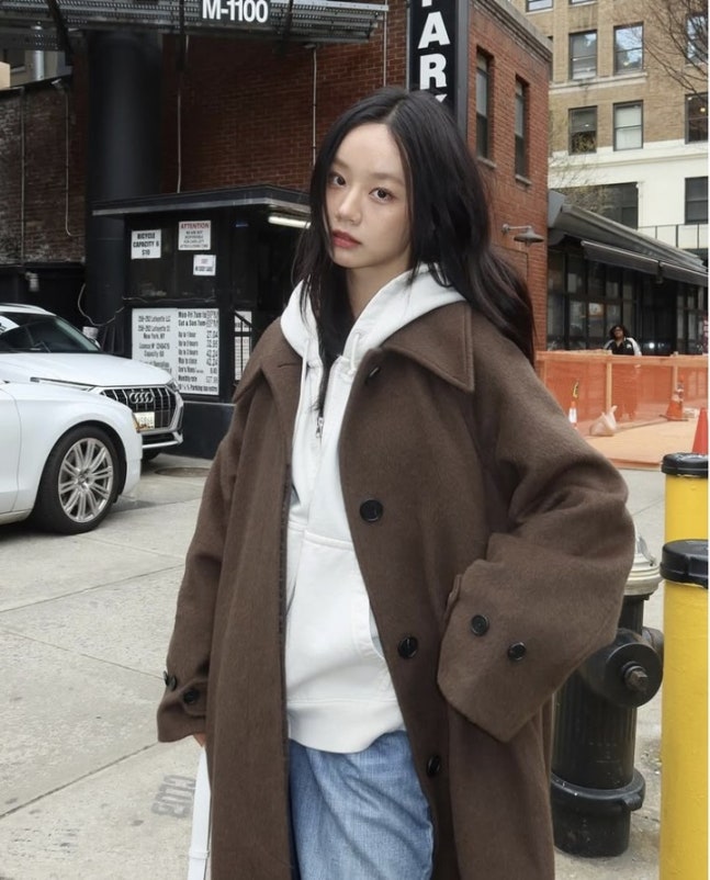 공개된 사진 속 혜리는 박시한 코트와 캐주얼한 후드집업을 매치하여 편안한 분위기를 자아냈다. 포인트로 준 분홍색 신발은 그의 패션에 매력을 한층 더하였다.