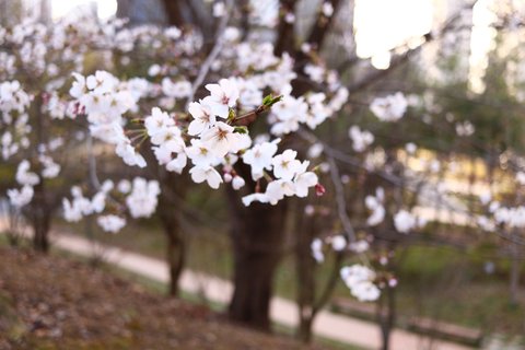 아파트 앞에 작은 공원이 있어요.작지만 봄에 벚꽃이 제법 예쁜 곳이죠 :D 오가면서 보다가 '이번 주말 만개하겠군. 사진 찍어야지!' 했는데 토요일에 비+감기... ㅠ_ㅠ