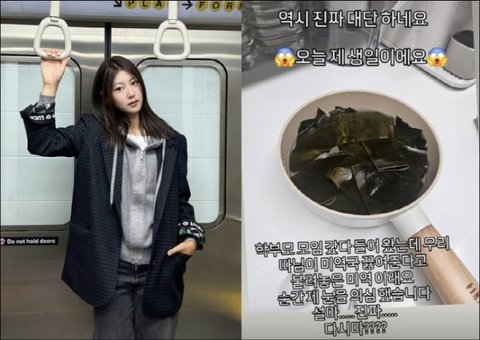 박연수는 5일 "역시 진짜 대단하네요. 오늘 제 생일이에요"라며 "학부모 모임 갔다 들어왔는데 우리 따님이 미역국 끓여준다고 불려놓은 미역이래요. 순간 제 눈을 의심했습니다. 설마…진짜….다시마????"라는 글과 함께 한 장의 사진을 게재했다.