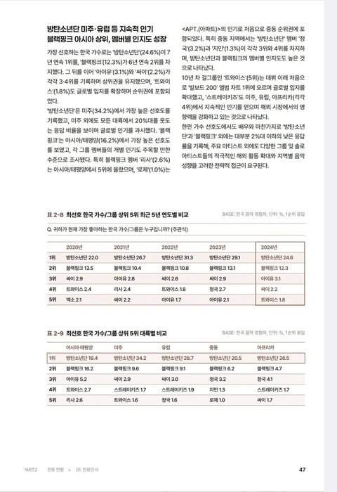 ㅁㄷ 열폭 애잔.. 한류, 최선호가 뭔지도 모르나.. 걍 제일 좋아하는 케이팝 가수 한명씩만 뽑은 결과라서 ㅈㄴ 객관적인 지표세요.. 문체부가 ㅈ밥으로 보이나 그리고 요즘에 대면조사 하는 조사기관이 도대체 어디있는데요 아주머니