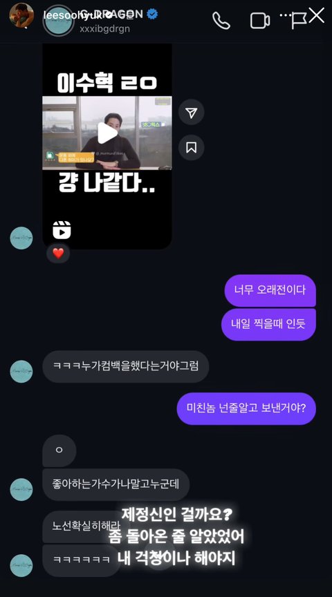 지디랑 이수혁 인스타 디엠 공개됨ㅋㅋ