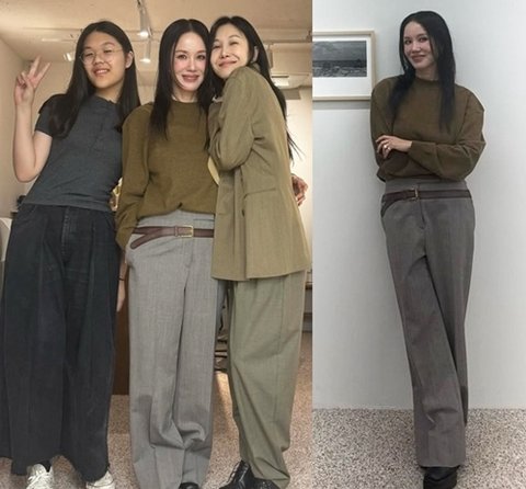 전체적으로 미니멀한 톤이지만, 허리에 둘러진 브라운 벨트가 절제된 룩에 세련된 포인트를 더했다.긴 생머리를 단정히 빗어 내린 모습과 톤다운된 메이크업은 그녀 특유의 우아한 분위기를 배가시켰다.
