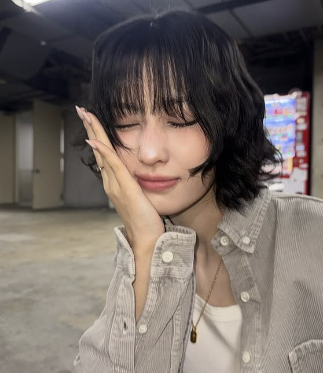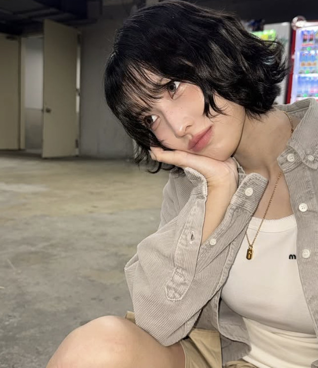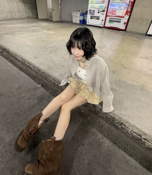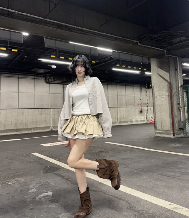 모모 소셜 계정 캡처사진 속 모모는 플리츠 미니스커트에 연그레이 셔츠 재킷을 매치한 캐주얼한 착장을 하고 다양한 포즈를 취하고 있다. 짧은 웨이브 헤어를 한 모모의 인형 같은 비주얼과 쭉 뻗은 11자 각선미가 감탄을 자아낸다.
