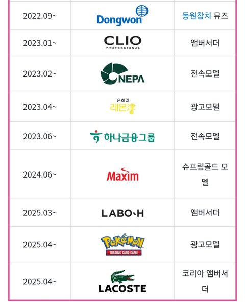 곧 팬디끝나서 명품도 추가될텐데 아이돌 중엔 안유진이 신뢰감있는 굵직한 광고 위주로 하고있음. 맥심이나 금융권 아무나 안하는 광고라.. (김연아 급)