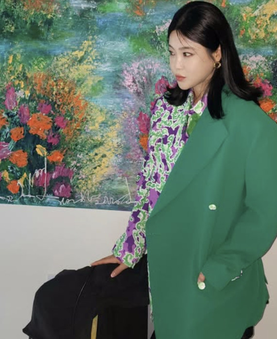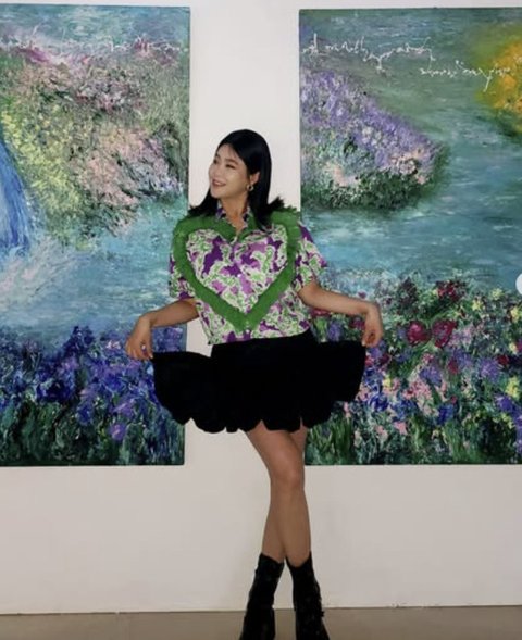 솔비 소셜 계정 캡처이와 함께 공개된 사진에는 평화로운 풍경이 담긴 그림 앞에서 포즈를 취하는 솔비 모습이 담겼다. 솔비는 초록색 니트 형태의 하트 패턴이 더해진 상의에 미니 스커트를 매치한 착장으로 러블리한 비주얼을 뽐내고 있다. 솔비의 쭉 뻗은 11자 각선미도 눈길을 끈다.