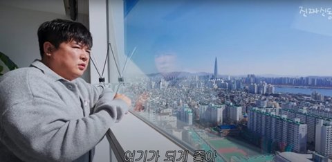 신동은 "집에 오는 사람들에게 구경시켜준다"며 "한강도 보이고 잠실 롯데타워도 보인다. 올림픽대로, 강변대로를 타기도 편하고 청담대교가 있어서 분당도 한 번에 쭉 간다. 주상복합이라 마트도 있다"고 말했다.