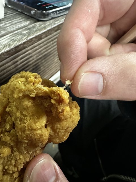 유명브랜드 B치킨 냠냠 하는데 닭 깃털 나옴