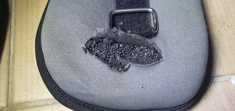이 모래주머니를 탈탈 털어보니 검은색 가루가 마구 나오는데