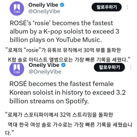 로제 대단한게 스포티랑 유툽뮤직이 같이 감ㄷㄷㄷㄷㄷㄷ