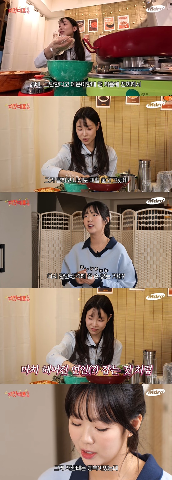 지예은은 "'다시 한 번 생각해줄 순 없는 거야?' 울면서 그랬던 것 같다. 마음을 되돌리려고 했다. 마치 헤어진 연인 잡는 것처럼"이라며 "'SNL'을 하면 적어도 일주일에 두 세번은 보니까. 그게 저한텐 행복이었는데, 그걸 못한다고 생각하니 믿기지 않았다"고 아쉬움을 표했다.