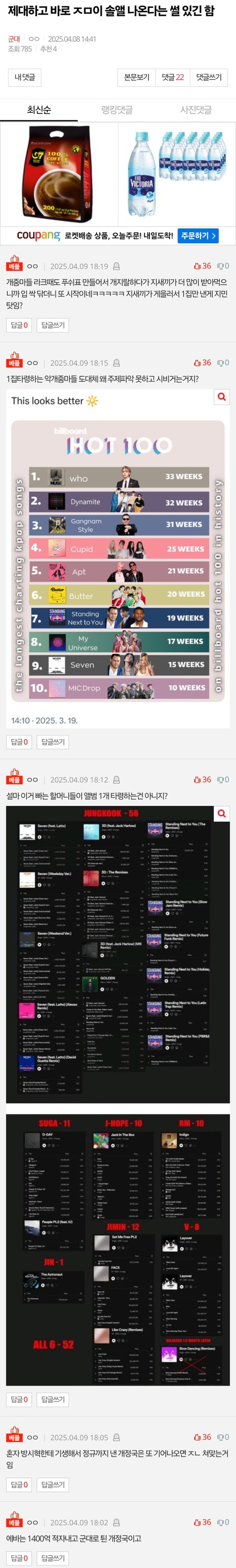 하루 지난 글 까지 몰려와서 이짓거리하면 분이 좀 풀리시나? ㅂㅅ들
