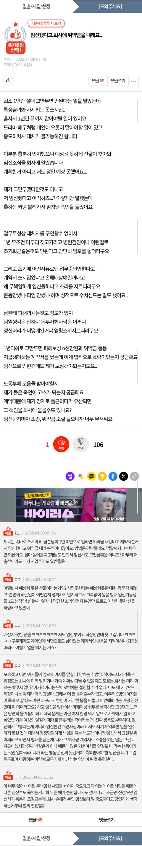 (원본지킴) 임신했다고 회사에 위약금을 내래요
