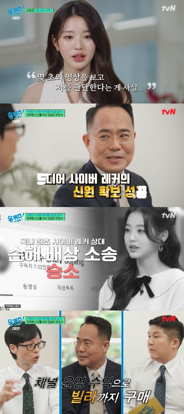 4월 9일 방송된 tvN 예능 '유 퀴즈 온 더 블럭'(이하 '유퀴즈') 288회에는 국내 최초로 사이버 레커를 잡은 정경석 변호사가 게스트로 출연했다.