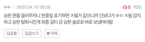 승한 솔로하겠다고 했으면 굳건함?을 보여야하는데