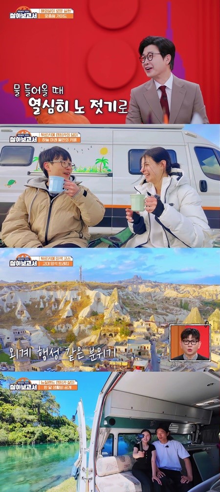 먼저 제이쓴은 “대륙을 오가는 캠핑과 여행이 가능하다”며 세계에서 유일하게 유럽과 아시아 두 대륙에 걸친 ‘문화 교차로’ 튀르키예를 소개했다. ‘한국-튀르키예’ 커플인 노국한-에일률 부부가 ‘살아본 가이드’로 출격했으며, 이들은 튀르키예 수도 앙카라에서 캠핑카를 렌트해 지중해 연안의 도시 안탈리아까지 떠나보겠다고 선포했다.