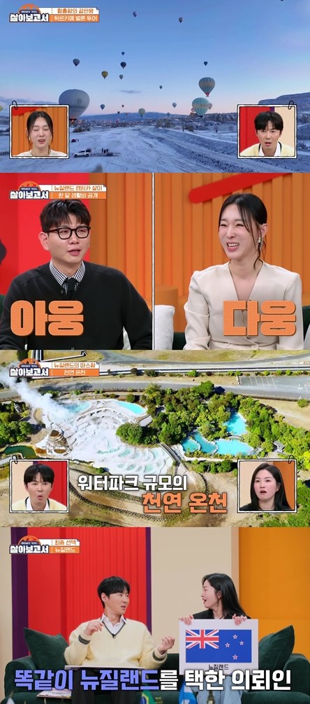 이렇게 두 나라의 매력이 대방출된 가운데, 전진과 류이서는 고민 끝에 뉴질랜드를 최종 선택했다. 전진은 “대자연의 매력에 끌렸다”라고, 류이서는 “온화한 날씨가 좋았다”고 뉴질랜드를 선택한 이유를 밝혔다. 김성주 역시 “아내와 단둘이면 튀르키예를 가겠는데, 아이들과 함께 가는 거면 뉴질랜드가 맞다”고 호응해 모두의 공감을 샀다.