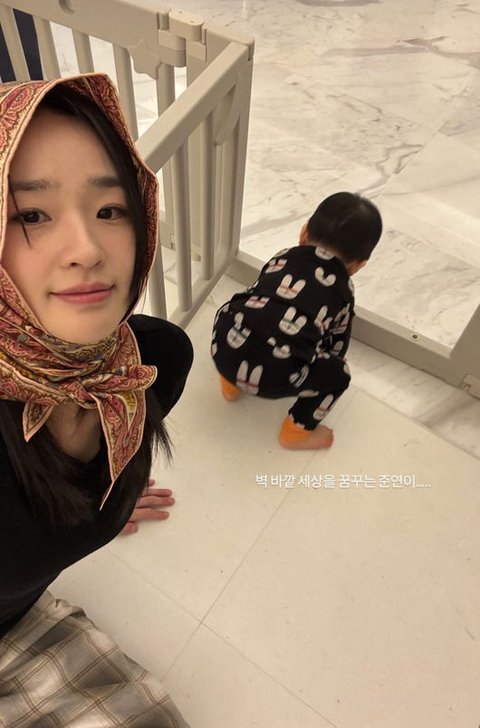 10일 손연재는 자신의 소셜 계정에 한 장의 사진을 공개했다. 손연재는 "벽 바깥 세상을 꿈꾸는 아들"이라는 글귀를 적었다. 아기들의 위험한 곳 제지를 위한 벽 설치를 공개한 손연재. 아들은 어느덧 훌쩍 커서 바닥을 짚고 일어설 나이가 됐다.