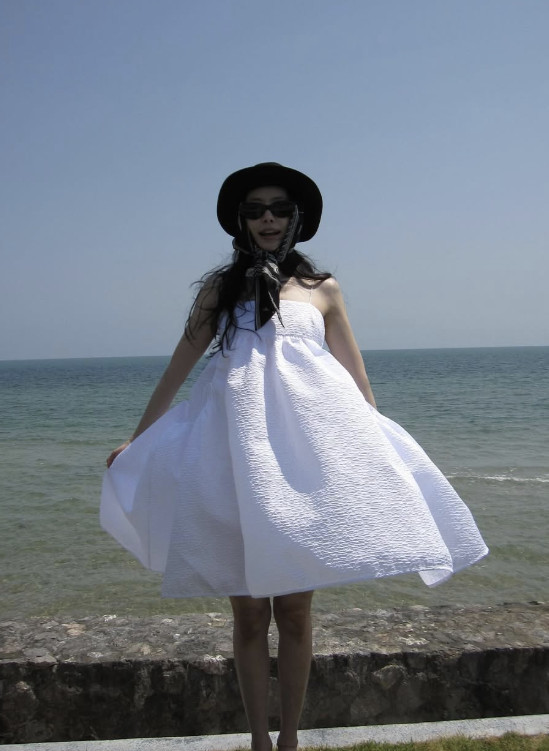 손나은 소셜 계정 캡처사진 속 손나은은 벌룬 미니 드레스를 입고 다양한 포즈를 취하고 있다.