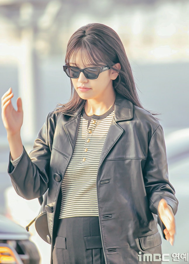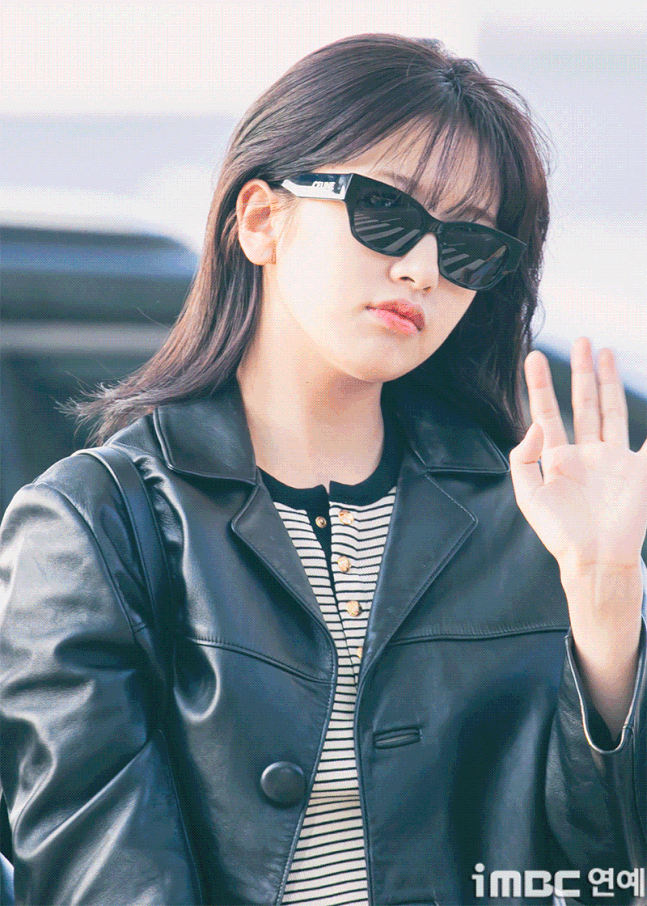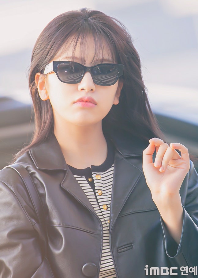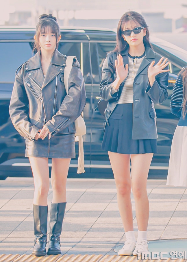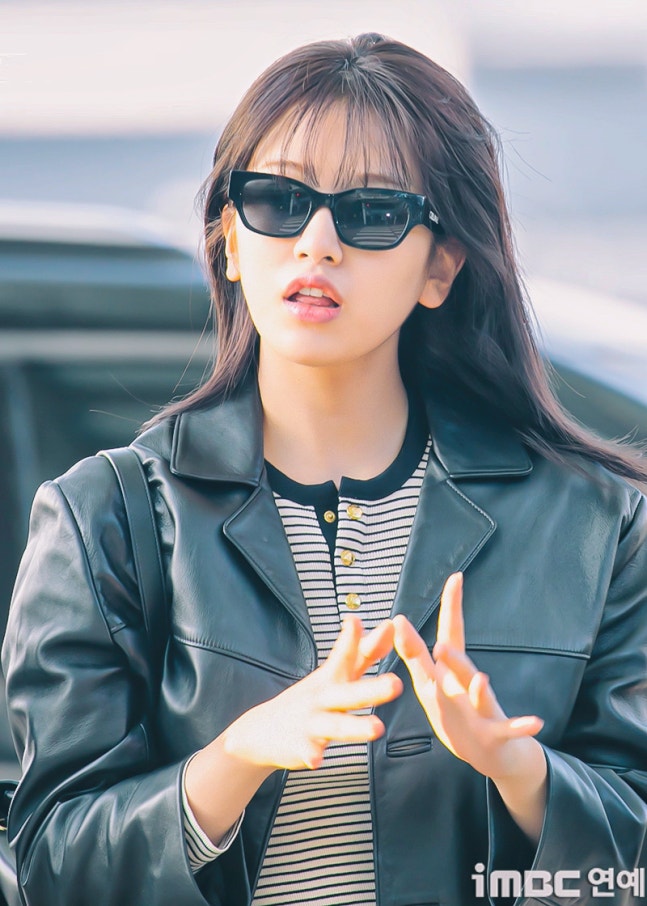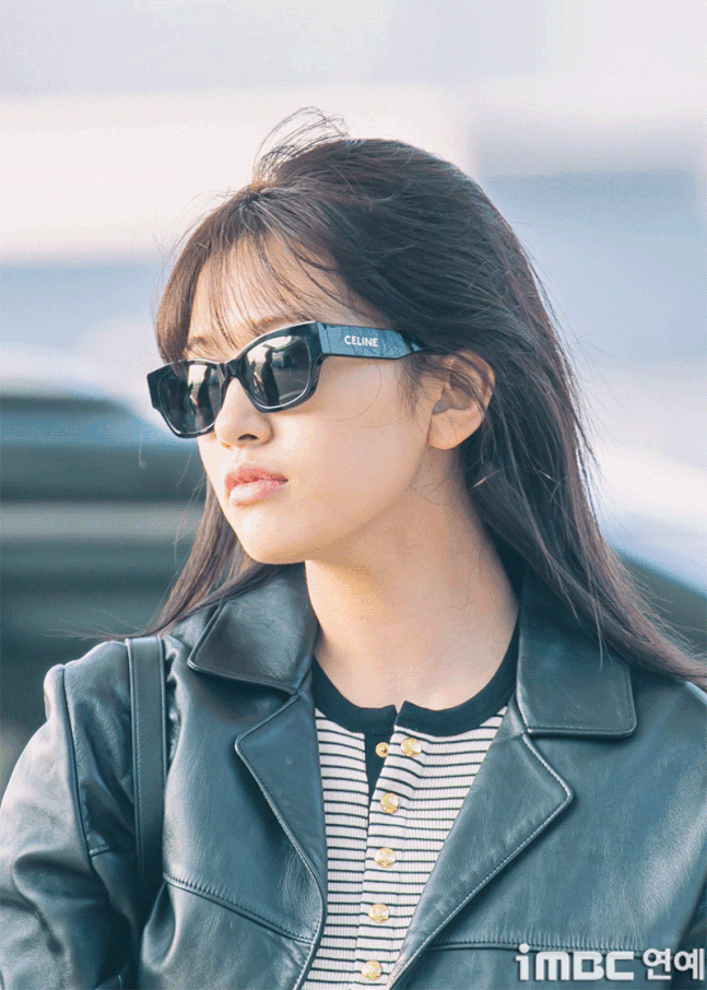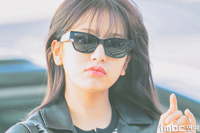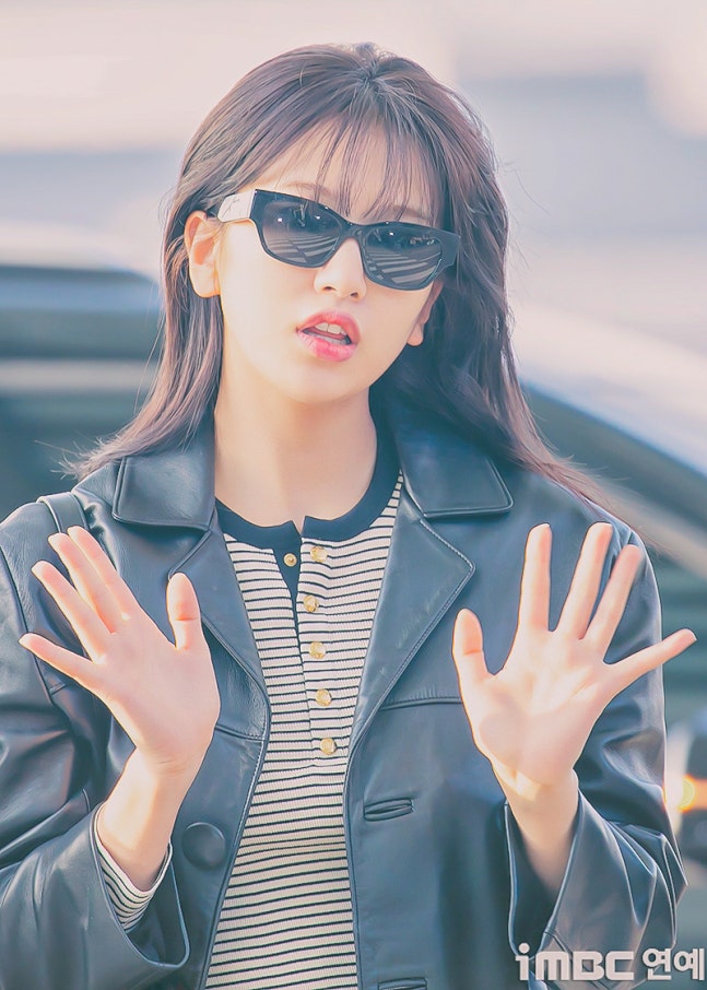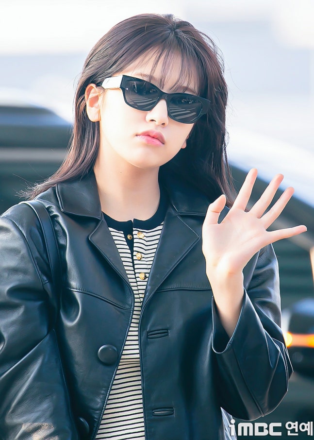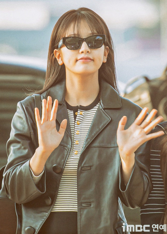 유진. 안유진이 이른 아침부터 선글라스와 가죽 재킷으로 인천 제1 여객터미널에서 '터미널2터' 포스를 뽐내며 '안유델'의 면모를 과시했다.