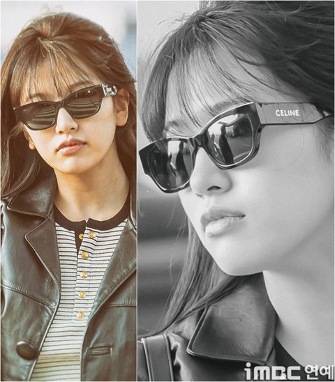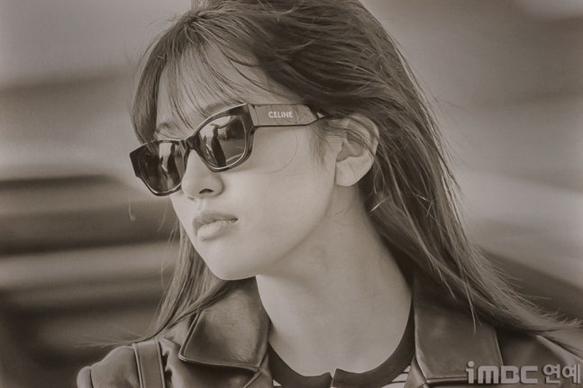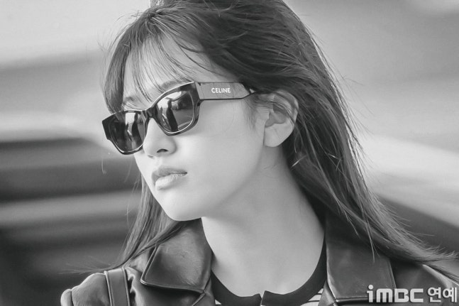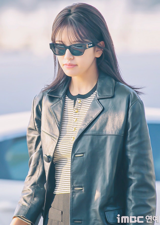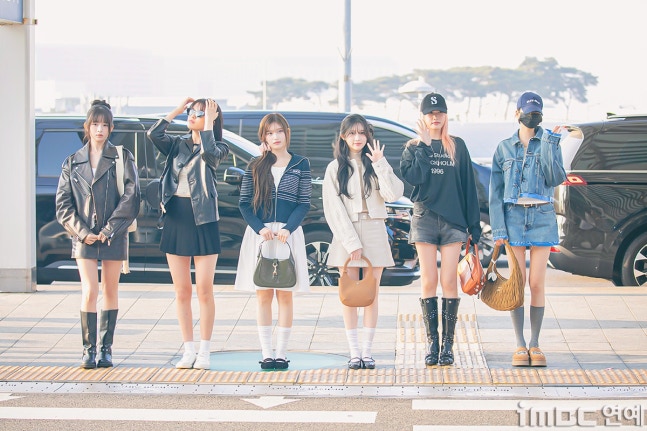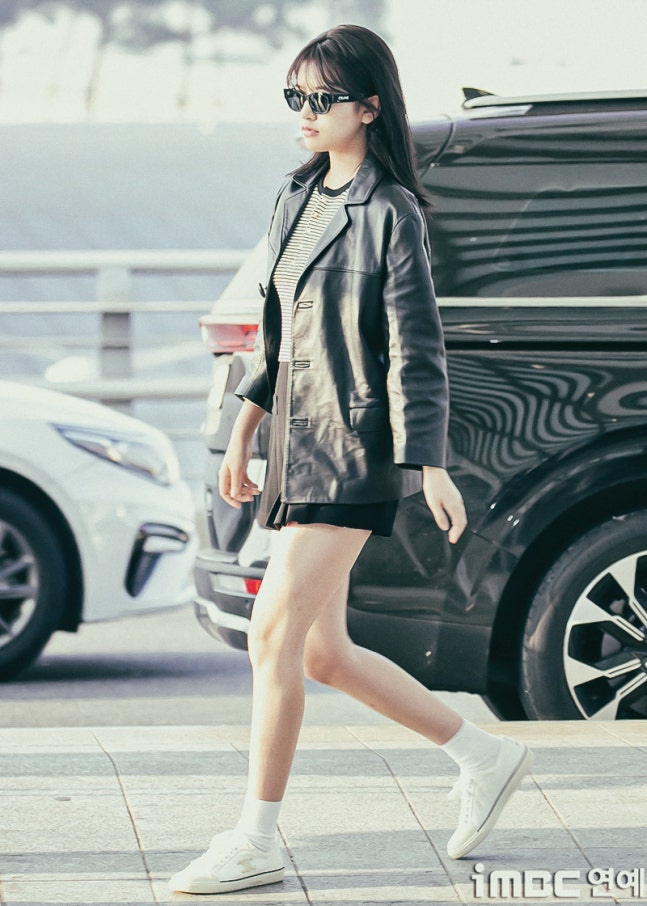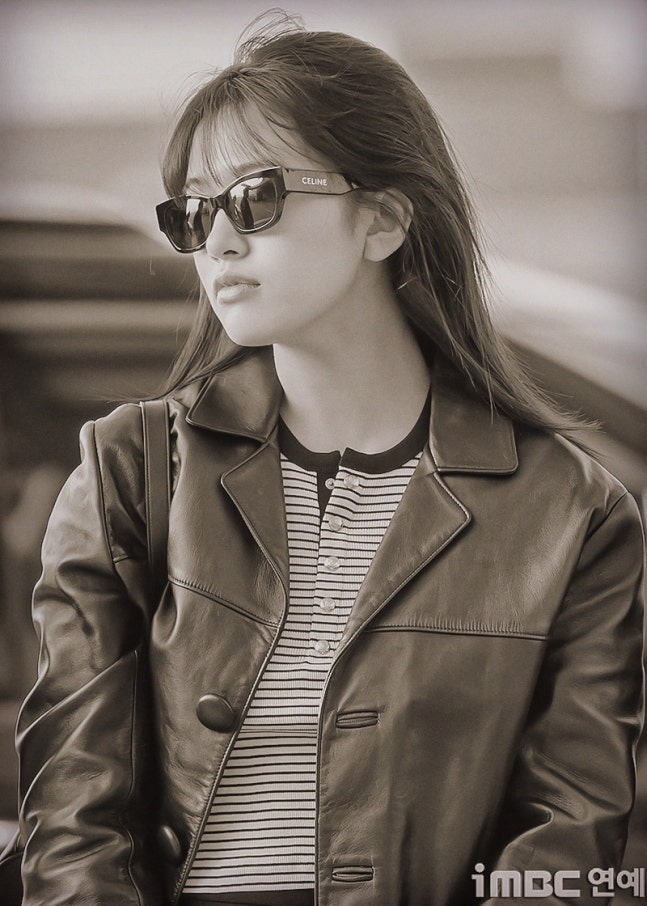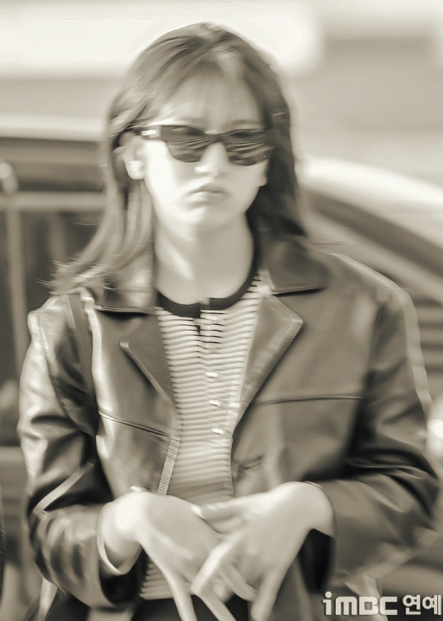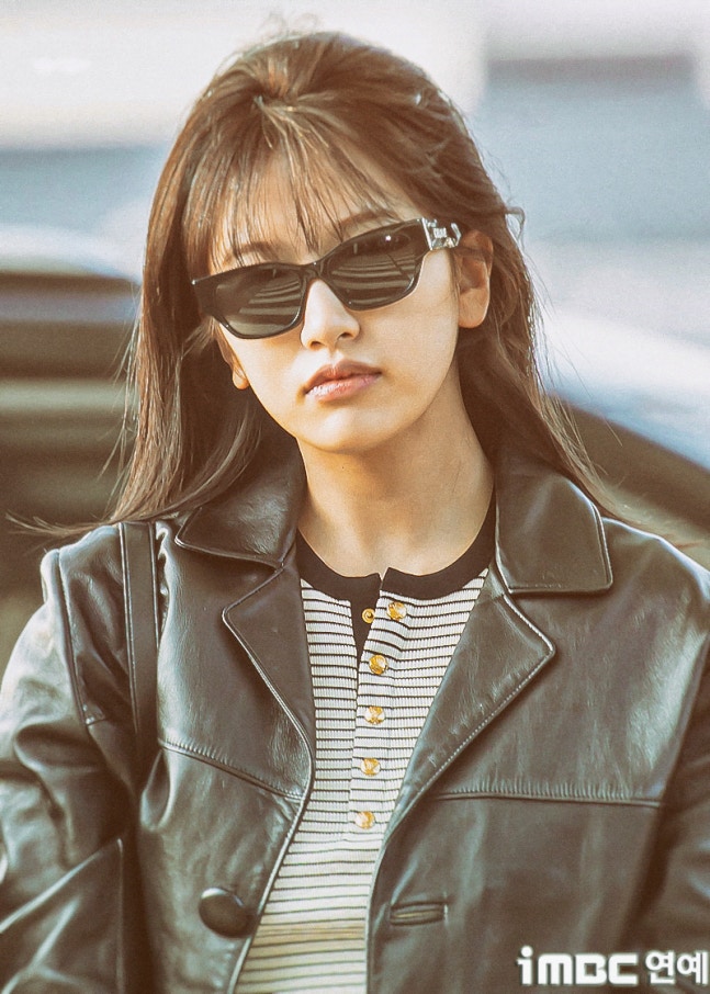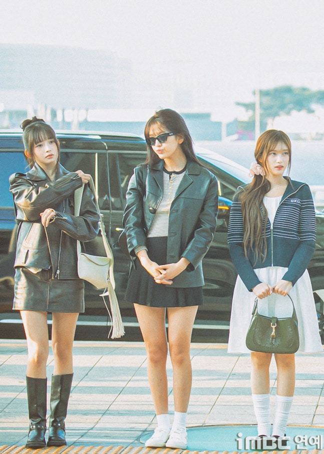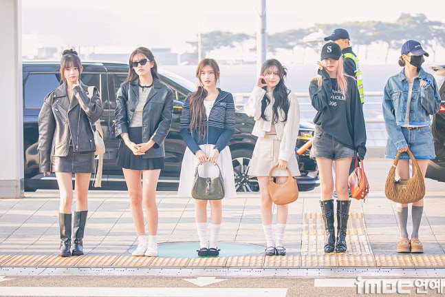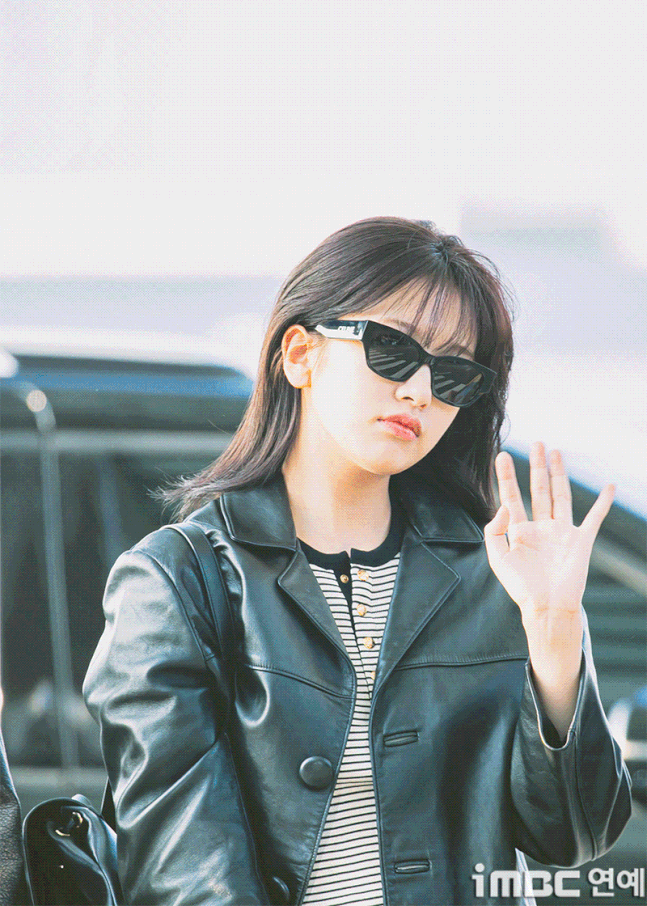 유진. 안유진이 이른 아침부터 선글라스와 가죽 재킷으로 인천 제1 여객터미널에서 '터미널2터' 포스를 뽐내며 '안유델'의 면모를 과시했다.