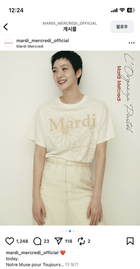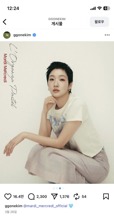 밥먹으면서 인스타보는데 김고은 숏컷 다시한거 예뻐서 보고있다가 반팔티도 눈에들어옴 2,3번 사진중에 하얀티에 베이지 하얀티에 민트색 뭘 살지 고민