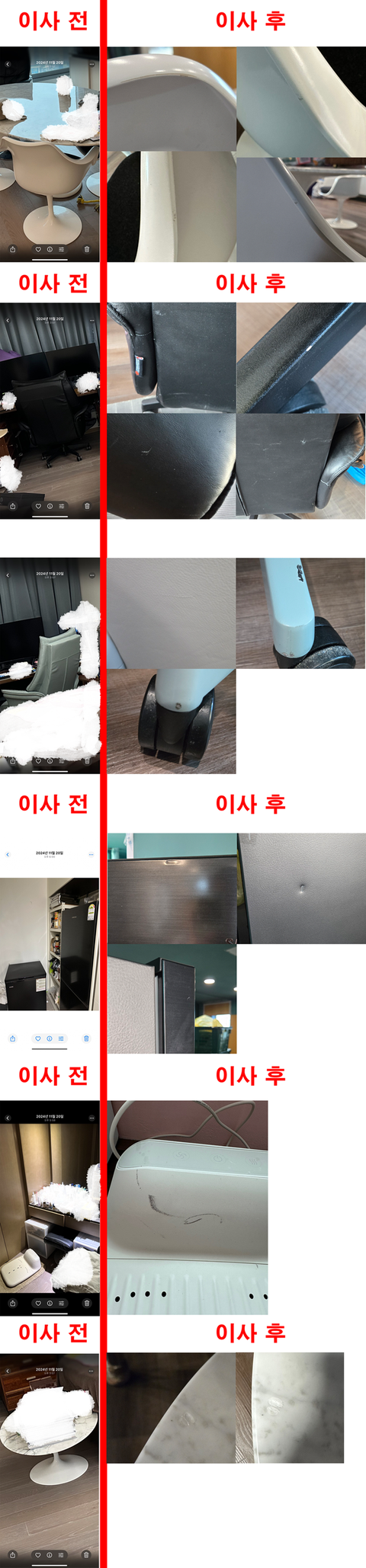 그리고 이사 당일 대표라는 사람이 직접 와서 고가 물건이 걱정이 돼서 직접 왔다며 컨디션 체크한다고 의자, 식탁, 책상의 자 고가의 제품들은 전부 체크를 했습니다.