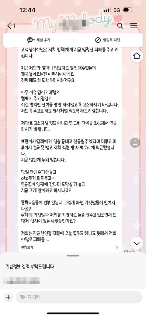 밤에 쫓아온 사람은 병원에 입원을 했다네요. 미행이 아니고 제가 돈을 안 주려고 도망을 갔고 그래서 따라간 거라고요, 추가 비용 할인해 준 것까지 전부 청구하고 가압류와 유치권 행사하겠다며 고문 변호사에게 요청했다고 합니다.