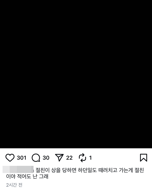 11일 설리 친오빠는 자신의 개인 계정에 "절친이 상을 당하면 하던 일도 때려치우고 가는 게 절친이야 적어도 난 그래"라는 글과 함께 검정 화면을 게재했다.