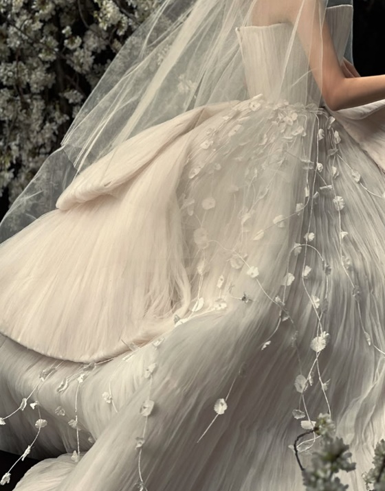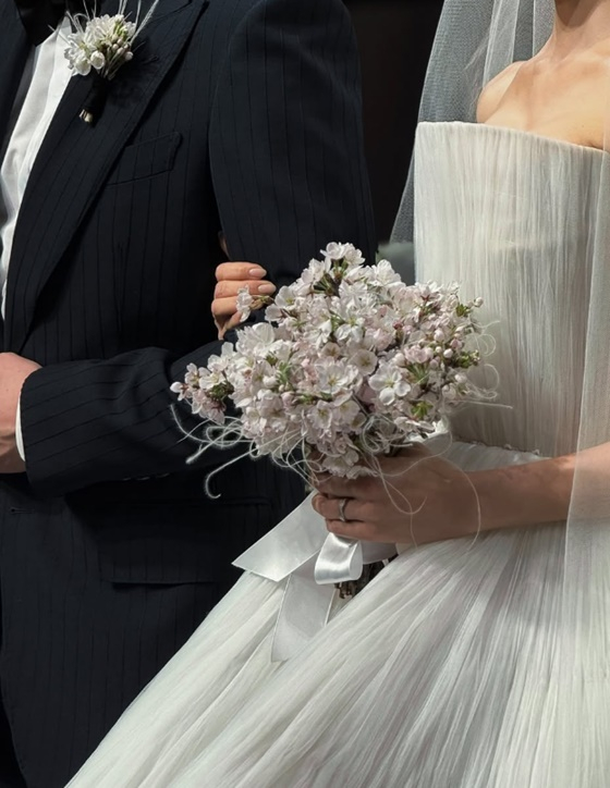 효민이 1부에서 착용한 드레스는 2025 S/S 사라므라드 하이엔드 웨딩드레스로 국내에 단 2벌만 있는 것으로 알려졌다. 또한 4월의 신부답게 결혼식장은 벚꽃이 가득한 버진로드로 눈길을 끌었다. 효민의 부케 역시 벚꽃으로 만들어졌다.