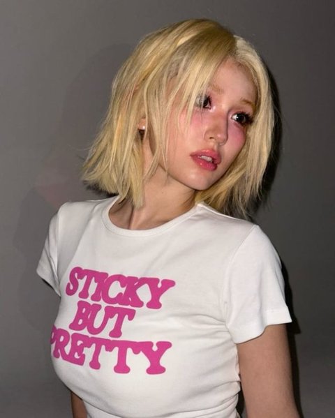 공개된 사진에서 전소미는 ‘STICKY BUT PRETTY’ 문구가 적힌 흰색 티셔츠를 입고 어딘가를 응시하고 있다.