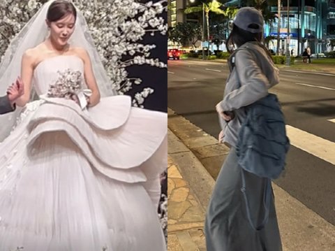 사진 속 효민은 모자에 트레이닝복을 입은 편안한 차림으로 걸어가고 있는 모습. 결혼식에서 선보인 화려한 드레스 자태와는 상반된 수수한 모습으로 시선을 모은다.